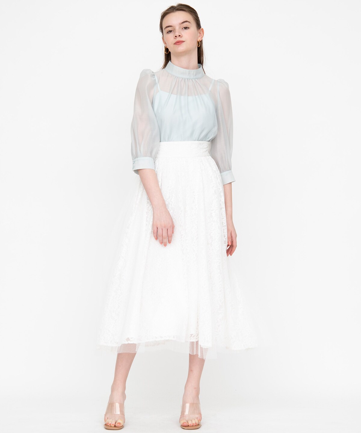 白 レース スカート コーデ