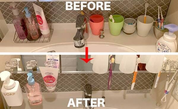 洗面所の歯磨き用コップ置き場。 いつも歯磨き後はコップの水滴で置き場はビチャビチャに。 。 。 でも毎回コップを拭くなんてなかなかできませんよね。 そんなプチストレスを吊り下げ収納で洗面台が広々! 絶対役立つプチプラアイテム 洗面台の上を占拠する歯ブラシやコップ、シェーバー。 これらの小物がなければ、洗面台をもっと広く使えるし、お掃除も